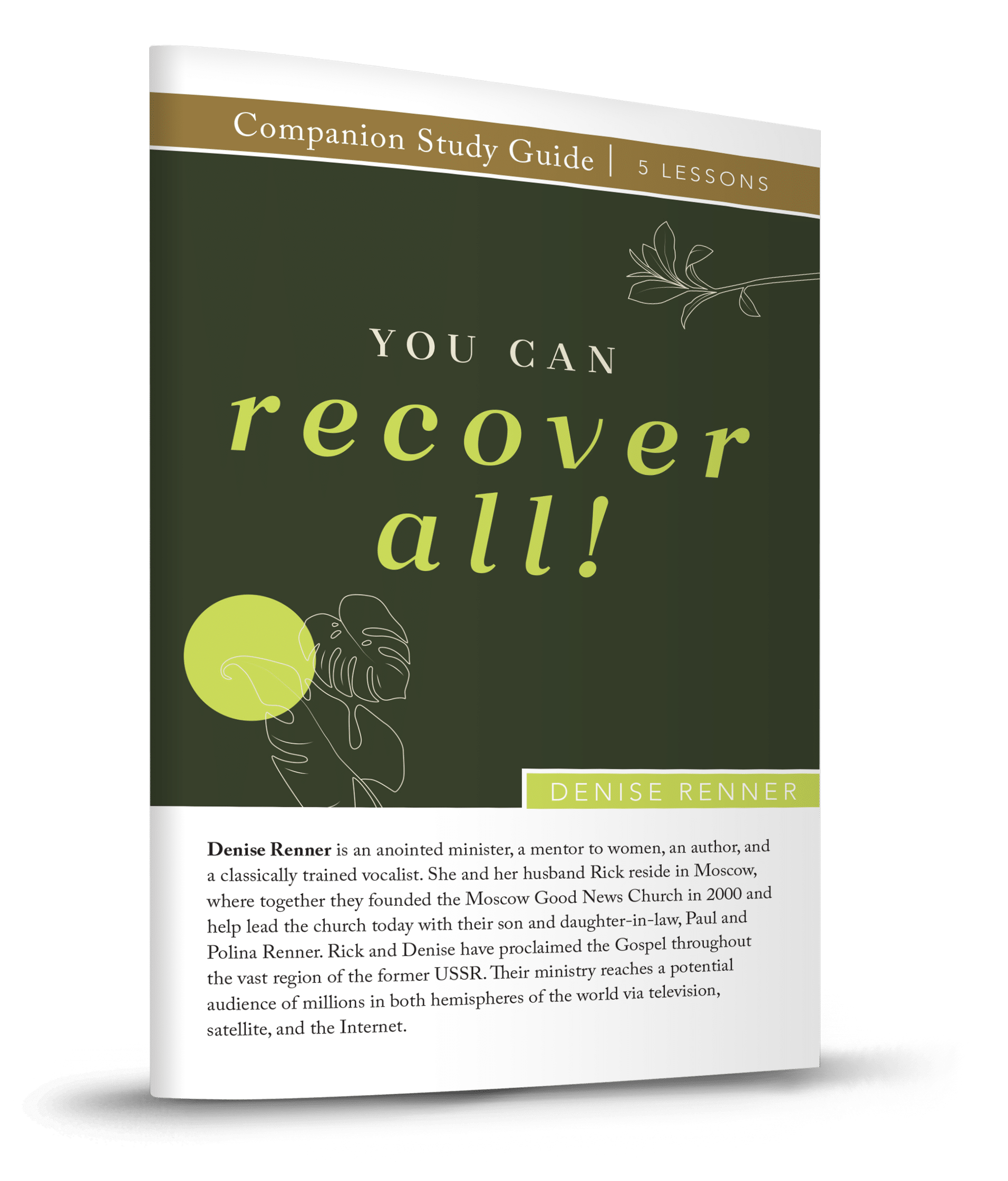 This 5-lesson PDF study guide corresponds to the “You Can Recover All!” series teaching. Each lesson covers a topic that is addressed during the program series where Denise Renner shares stories from the Bible and from her own life that will encourage you.
